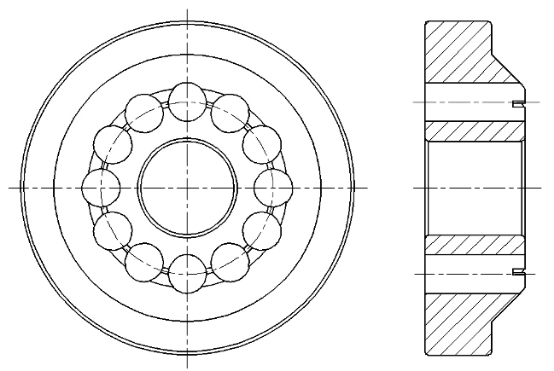 軸度。因此,銑削出的兜孔實際旋轉中心徑與理論中心徑偏差較大(即兜孔同軸度誤差較大),保持架兜孔等分散差較大,導致軸承在運轉過程中噪聲比較大,必須對夾具進行優化改進。